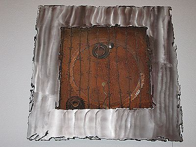 Ein «Schlosser mit künstlerischem Flair» stellt bereits seit anfangs Saison im Hotel Jungfrau in Mürren aus. So aufregend das tönt, so spannungsreich sind die Werke des langjährigen Mürren-Gastes und Zürcher Oberländers Thomas Maag. An den hohen weissen Wänden des Esssaals kommen die ebenso ansprechenden wie auch originellen Kunstwerke des Zürchers gut zur Geltung. Maag arbeitet mit Alteisen aller Art, das er selbst sammelt. Mit verschiedenartigen Verarbeitungen des Materials setzt er schliesslich Akzente. Angerostetes Metall schneidet er so zurecht, dass es aussieht wie natürlich zerfressenes Blech. Aus der Anordnung auf hell glänzendem, poliertem chromstahlartigem Metall ergibt sich ein attraktiver Kontrast. Sehr oft benutzt Maag auch ganze Metallteile wie etwa Schrauben, Stacheldraht oder Nieten. Das Werk «Harmonie» etwa zeigt ein Motorrad, das er aus Kettenresten und anderen Maschinenteilen angeordnet hat. Besonders bewegend ist das Werk «Zimmer 4»: In einem hellglänzenden Rahmen komponiert Maag aus Sägeblättern einen Kreis, zwei kleine Kreise und einen Stern, der wie eine Blume bestielt aus dem grossen Ring empor ragt, zu einem harmonischen Gesamtbild mit weichen und runden Formen. Doch Stacheldraht, parallel und wie Gitterstäbe angeordnet, nimmt dem Bild das Bezaubernde und belegt es mit einem beklemmenden Bann.
