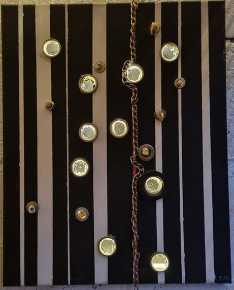 "Fröhlicher Strichcode", Juli 2023, LED beleuchtet, 40x60cm |