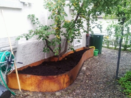 Kundenauftrag Hochbeet aus 2mm Stahlblech, Länge 5.40m / Höhe 0.40m / max Breite 1.1m
